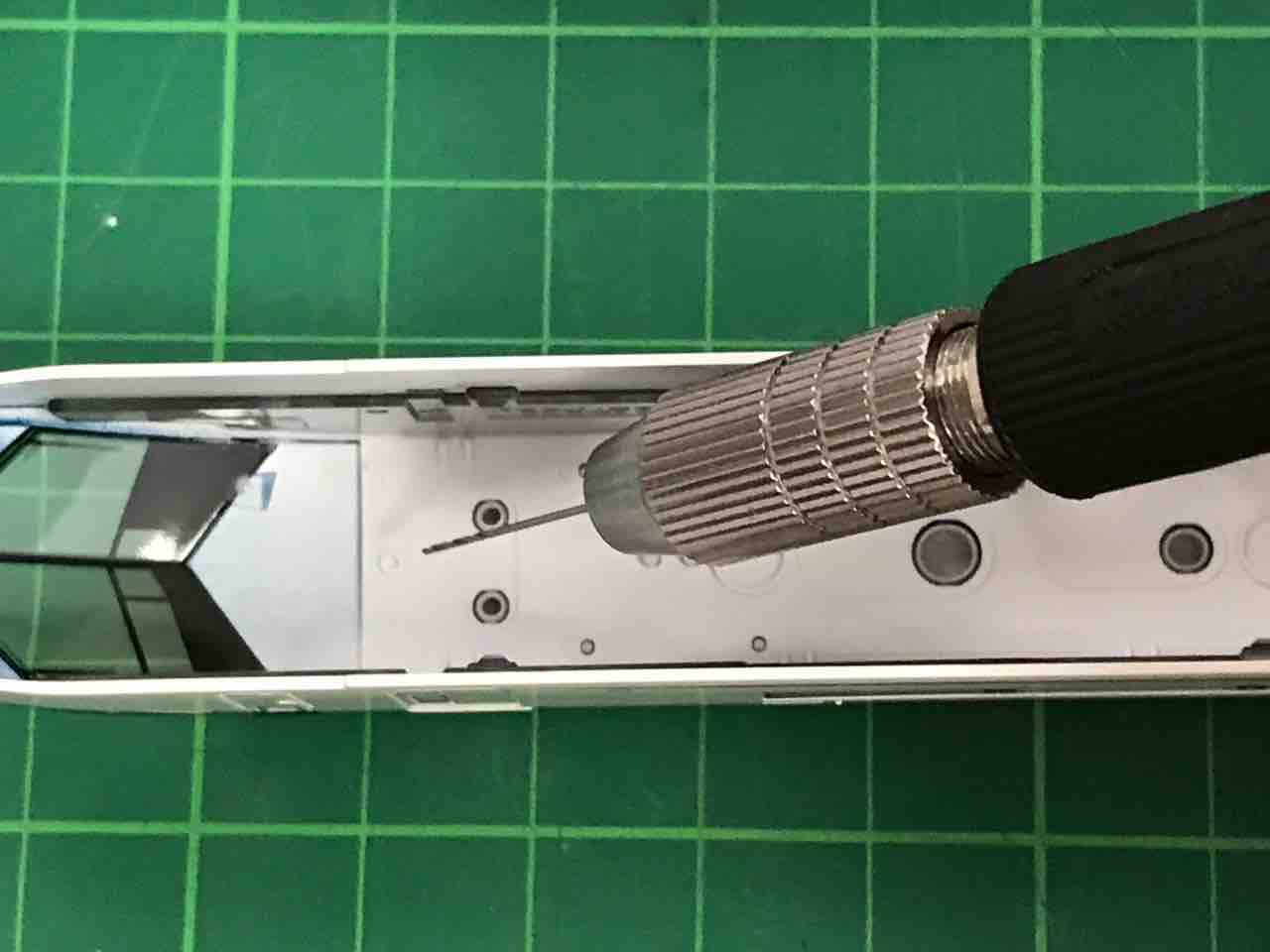 というところで、デジタルSR無線アンテナ用の穴が空いておらず、0.5mmのピンバイスで裏からどうぞ、とのこと💧