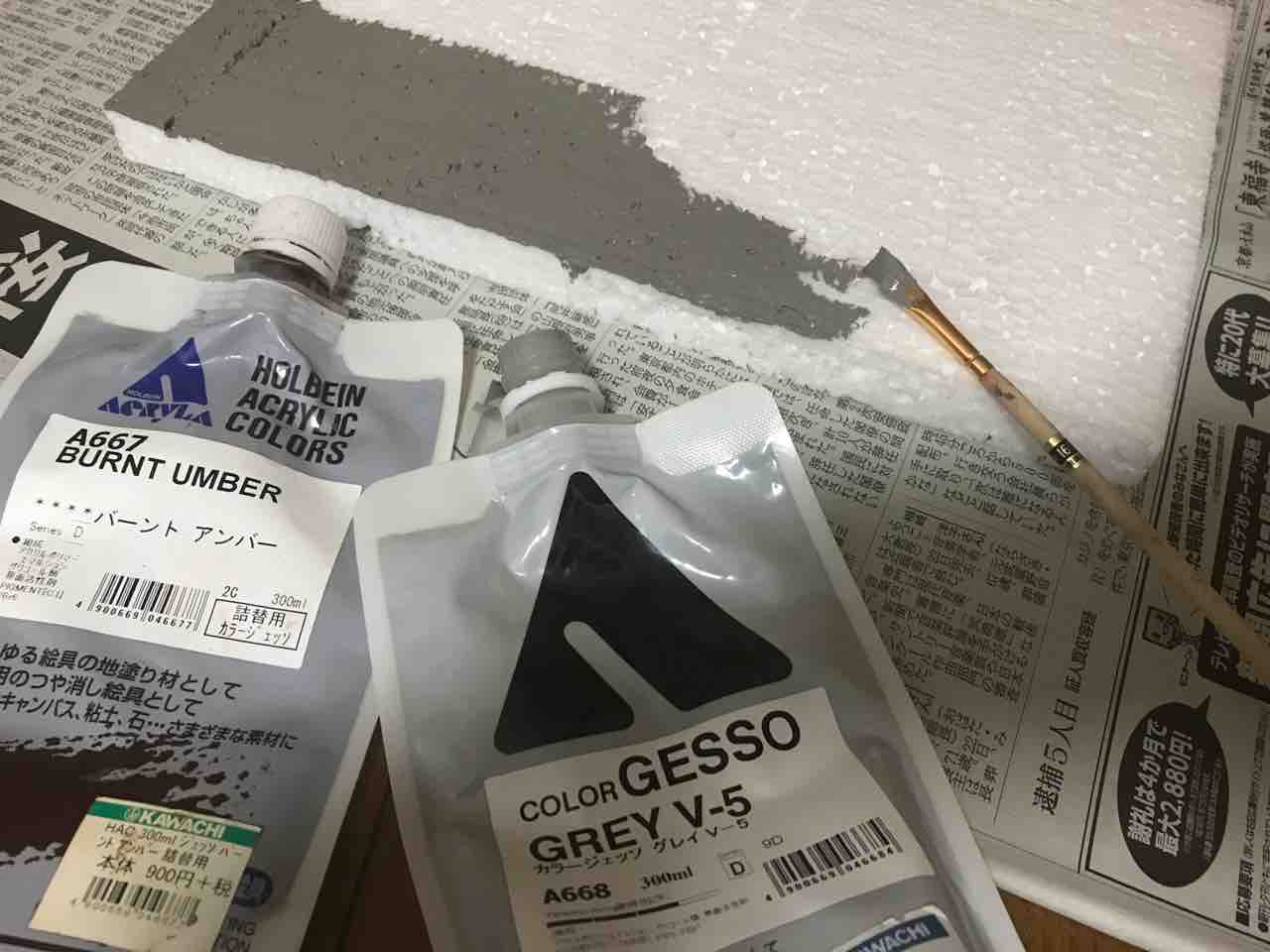 これまたレイアウト製作時に余っていた下塗り用の画材、カラージェッソ❣️