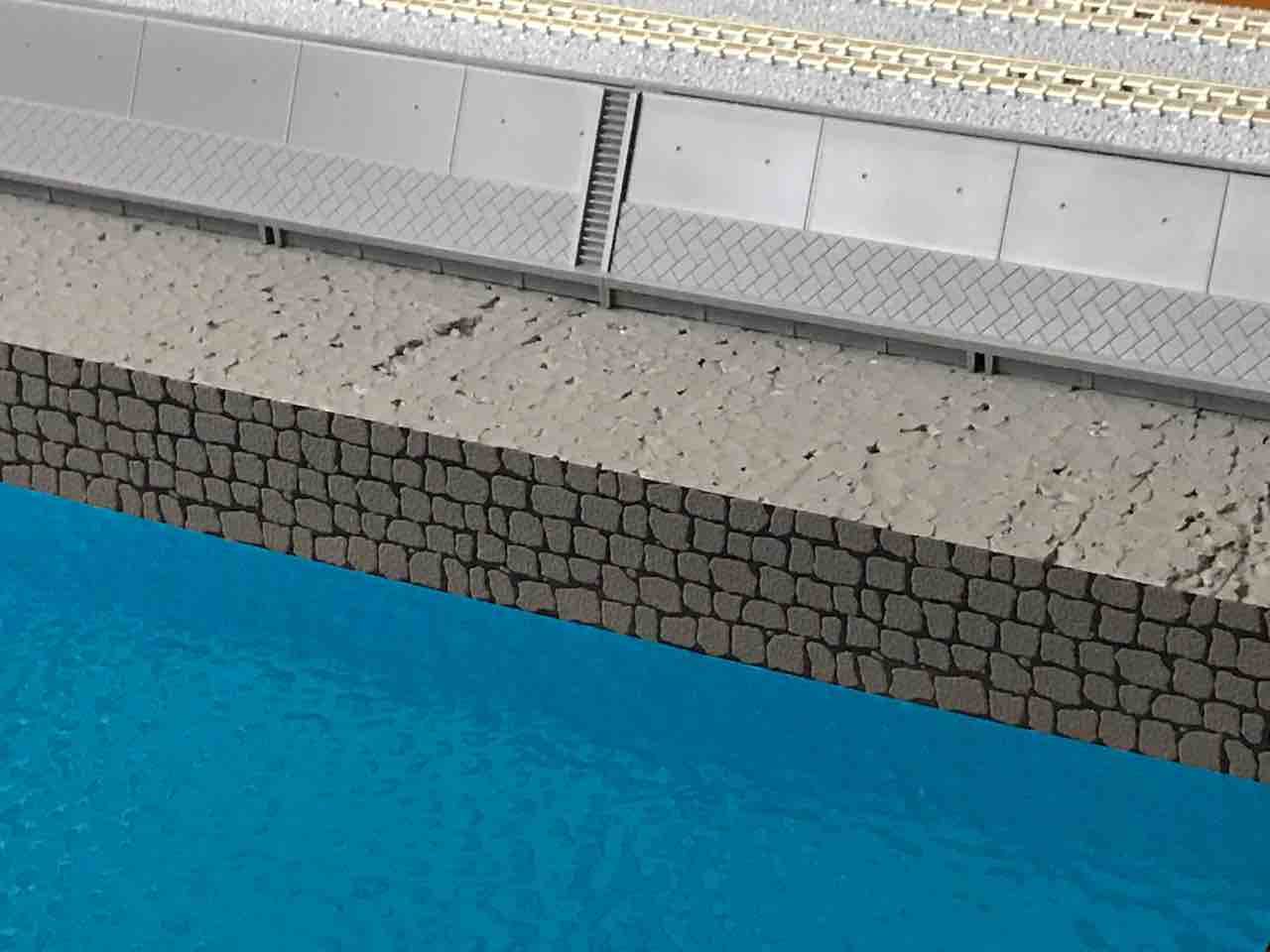 擁壁の反復がとても不自然で、一段目と二段目の継目も非常に気になります。