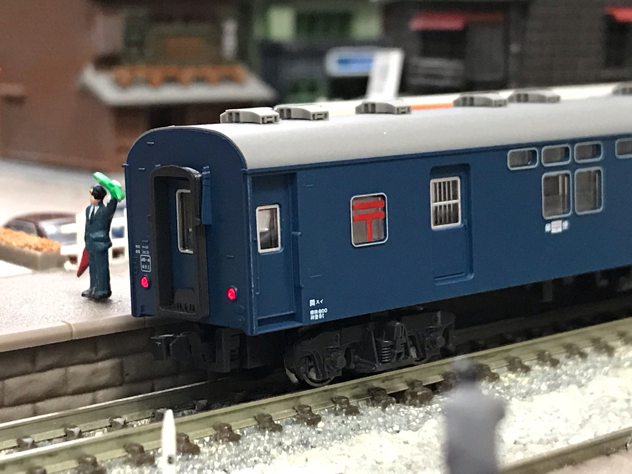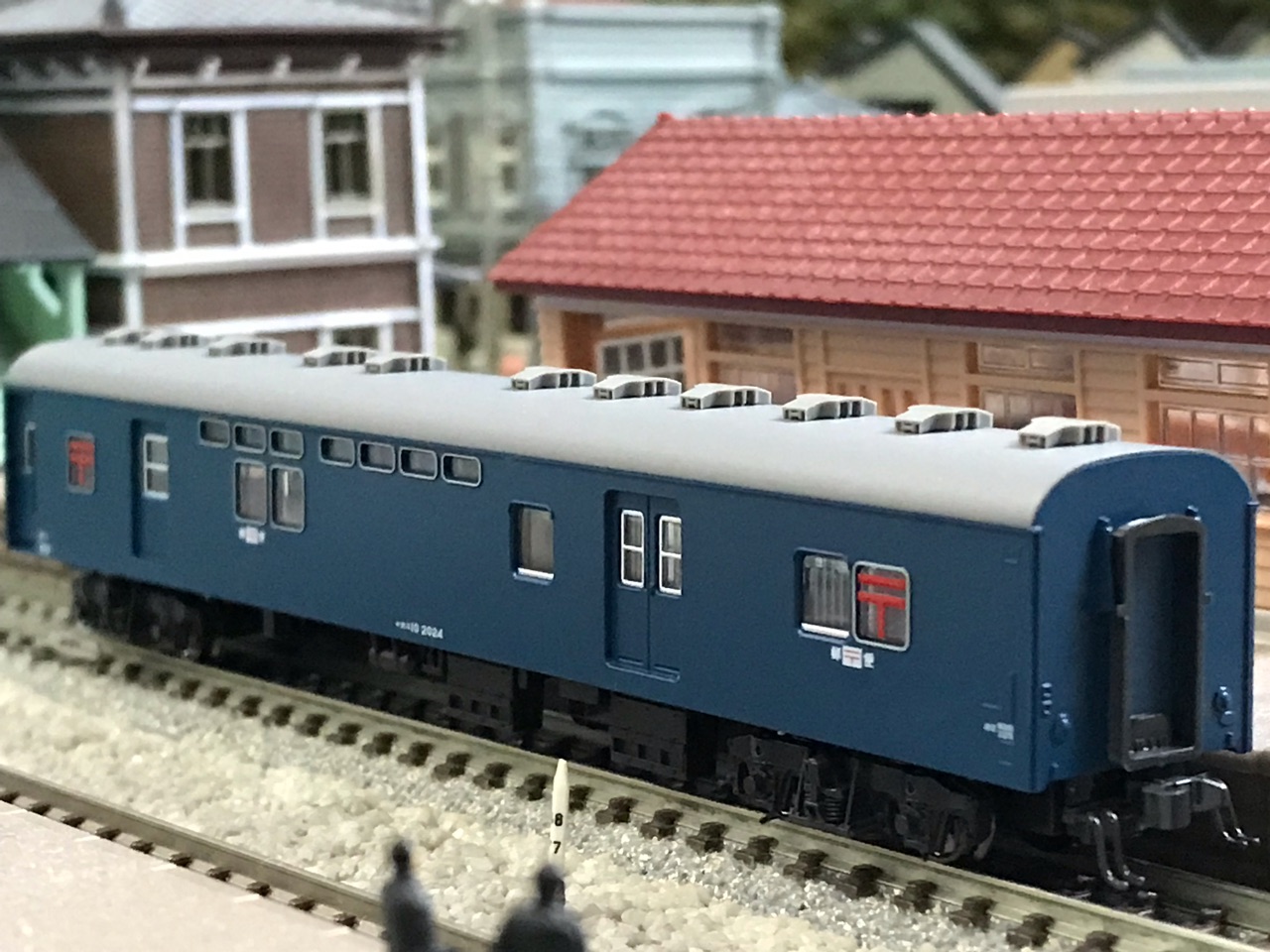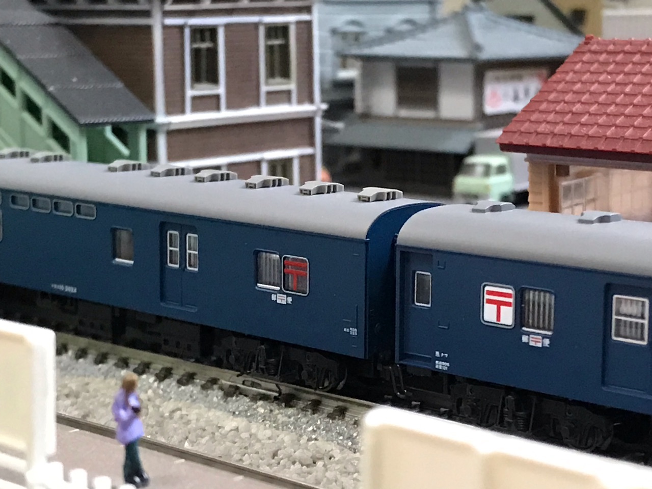 収納場所は、これまたAssyで組んだ朋友オユ12と共に、郵便・荷物車セット(東海道・後期形)下段空きスペースへ 💕